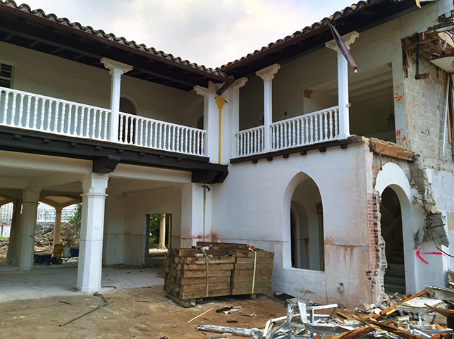 The demolition continues and original materials like blocks and beams are preserved to be re-installed once the structure is moved. The original house from 1924 remains untouched and it is being preserved to be moved to the front of the lot.